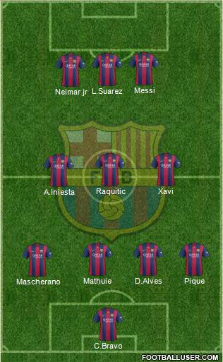 C.Bravo · Mascherano · Mathuie · D.Alves · Pique · A.Iniesta · Raquitic · Xavi · Neimar jr · L.Suarez · Messi