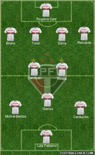 Rogério Ceni · Reinaldo · Bruno · Tolói · Dória · Denílson · Souza · Ganso · Michel Bastos · Centurión · Luis Fabiano