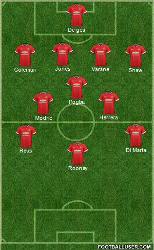 De gea · Jones · Varane · Coleman · Shaw · Pogba · Herrera · Modric · Di Maria · Reus · Rooney