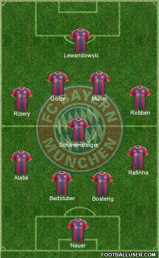 Neuer · Boateng · Badstuber · Alaba · Rafinha · Schweinsteiger · · Ribery · Robben · Götze · Müller · Lewandowski
