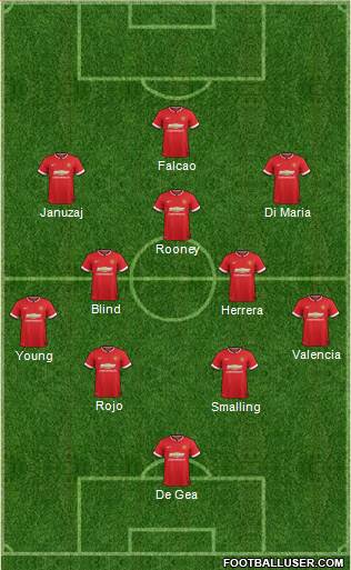 De Gea · Smalling · Rojo · Young · Valencia · Herrera · Blind · Rooney · Januzaj · Di Maria · FalcaoTeam to play Newcastle... Bench - Valdes,Shaw,Evans,McNair,Fellaini,Mata,Wilson