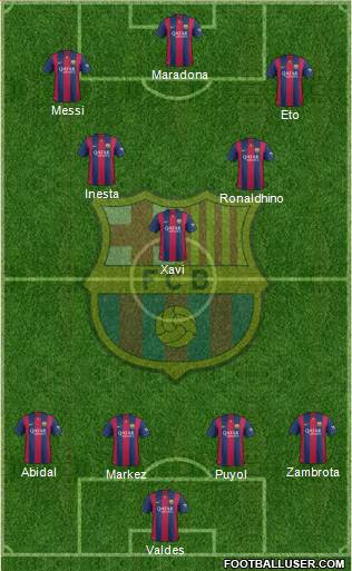 Valdes · Markez · Puyol · Abidal · Zambrota · Xavi · Ronaldhino · Inesta · Eto · Messi · Maradona