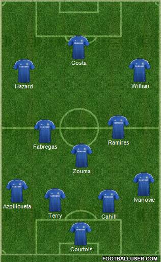 Courtois · Cahill · Terry · Azpilicueta · Ivanovic · Zouma · Fabregas · Ramires · Hazard · Willian · Costa