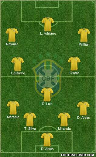 D. Alves · T. Silva · Miranda · D. Alves · Marcelo · D. Luiz · Coutinho · Oscar · Willian · Neymar · L. Adriano