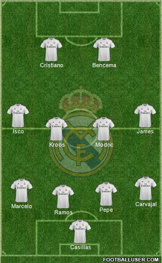 Casillas · Ramos · Pepe · Marcelo · Carvajal · Kroos · Modric · Isco · James · Cristiano · Bencema