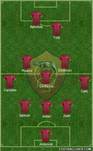 Antonioli · Aldair · Juan · Samuel · Cafú · Candela · De Rossi · Pizarro · Emerson · Totti · Batistuta