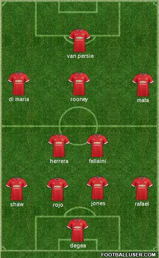 degea · rojo · shaw · rafael · jones · herrera · fellaini · mata · di maria · rooney · van persie