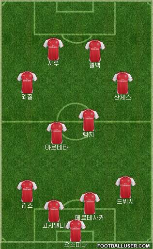오스피나 · 코시엘니 · 메르테사커 · 깁스 · 드뷔시 · 아르테타 · 램지 · 산체스 · 외질 · 웰벡 · 지루