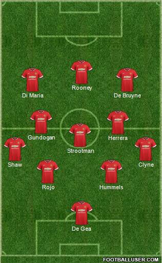 De Gea · Rojo · Hummels · Shaw · Clyne · Strootman · Herrera · Gundogan · Di Maria · De Bruyne · Rooney