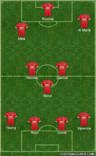 Rojo · Jones · Valencia · Young · Blind · Herrera · Carrick · Mata · di María · Rooney
