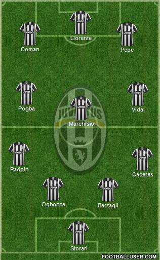 Storari · Barzagli · Ogbonna · Caceres · Padoin · Marchisio · Vidal · Pogba · Pepe · Coman · Llorente