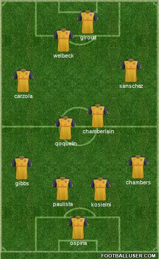 ospina · kosielni · paulista · gibbs · chambers · qoquelin · chamberlain · carzola · sanschez · welbeck · giroud
