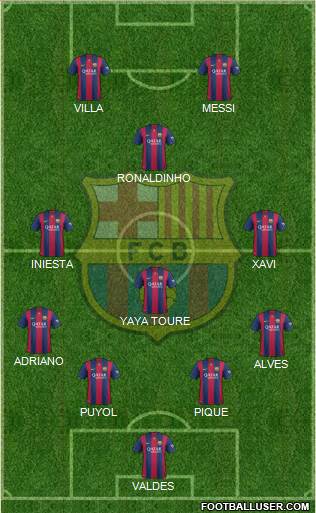 VALDES · PUYOL · PIQUE · ALVES · ADRIANO · YAYA TOURE · INIESTA · XAVI · RONALDINHO · VILLA · MESSI
