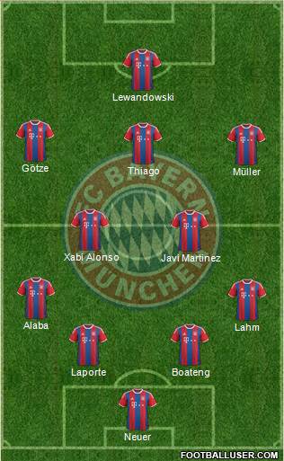 Neuer · Laporte · Boateng · Lahm · Alaba · Javi Martinez · Xabi Alonso · Müller · Thiago · Götze · Lewandowski