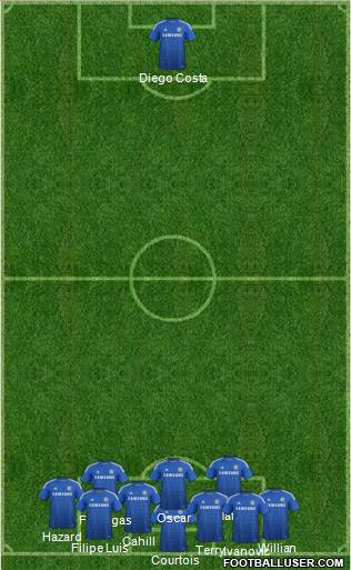 Courtois · Ivanovic · Terry · Filipe Luis · Willian · Cahill · Hazard · Fabregas · Oscar · Matic · Diego Costa