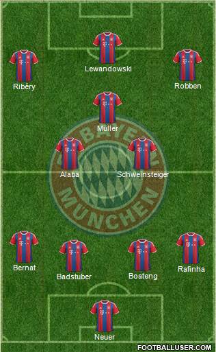 Neuer · Badstuber · Boateng · Rafinha · Bernat · Alaba · Schweinsteiger · Müller · Ribéry · Robben · Lewandowski