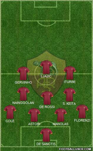 DE SANCTIS · ASTORI · MANOLAS · COLE · FLORENZI · DE ROSSI · S. KEITA · NAINGGOLAN · GERVINHO · ITURBE · LJAJIC
