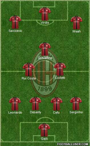 Galli · Leonardo · Cafu · Desailly · Serginho · Rui Costa · Lodetti · Schiaffino · Weah · Savicevic · Virdis
