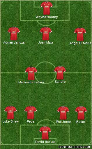 David de Gea · Phil Jones · Rafael · Luke Shaw · Pepe · Marouane Fellaini · Sandro · Angel Di Maria · Adnan Januzaj · Juan Mata · Wayne Rooney