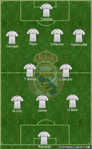 Casillas · Pepe · S.Ramos · Azpilicueta · Carvajal · T.Kroos · L.Modric · G.Bale · James · M.Ozil · Ronaldo