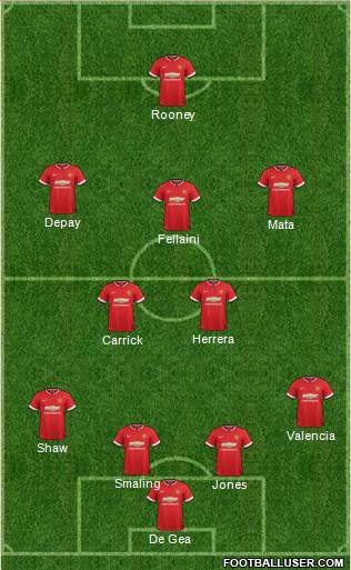 De Gea · Jones · Smaling · Shaw · Valencia · Carrick · Herrera · Fellaini · Mata · Depay · RooneyMata nije klasicno krilo vise bi vukao u sredinu i ostavljao prostor Valensiji