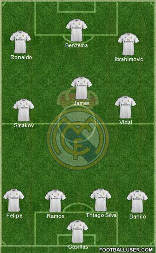 Casillas · Danilo · Ramos · Felipe · Thiago Silva · Smakov · Vidal · James · Ibrahimovic · Ronaldo · Benzema