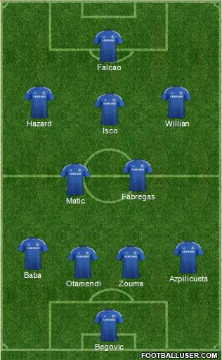 Begovic · Otamendi · Zouma · Azpilicueta · Baba · Matic · Fabregas · Isco · Hazard · Willian · Falcao
