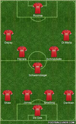 De Gea · Shaw · Darmian · Jones · Smalling · Schweinsteiger · Herrera · Schneiderlin · Depay · Di Maria · Rooney