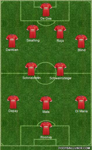 De Gea · Smalling · Rojo · Darmian · Blind · Schneiderlin · Schweinsteiger · Depay · Di Maria · Mata · Rooney