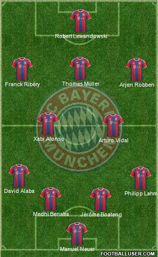 Manuel Neuer · Jérôme Boateng · Medhi Benatia · Philipp Lahm · David Alaba · Arturo Vidal · Xabi Alonso · Arjen Robben · Franck Ribéry · Thomas Müller · Robert Lewandowski