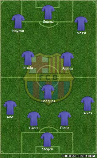 Stegen · Bartra · Pique · Alba · Alves · Bosques · Rakitic · Inesta · Messi · Neymar · Suarez