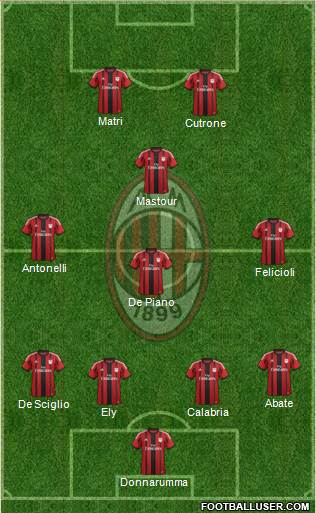 Donnarumma · Ely · Calabria · De Sciglio · Abate · De Piano · Felicioli · Antonelli · Mastour · Cutrone · Matri
