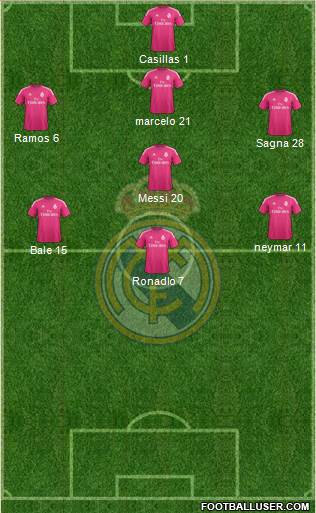 Casillas 1 · marcelo 21 · Ramos 6 · Sagna 28 · Messi 20 · neymar 11 · Bale 15 · Ronadlo 7