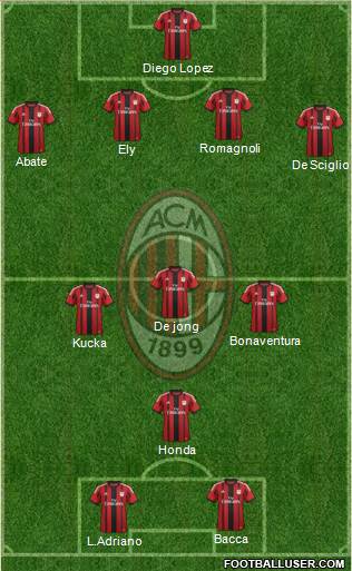 L.Adriano · Bacca · Honda · Kucka · Bonaventura · De jong · De Sciglio · Abate · Ely · Romagnoli · Diego Lopez
