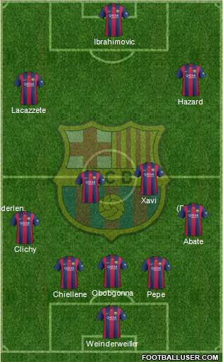 Weinderweiller · Chiellene · Pepe · Obobgonna · Clichy · Abate · Sneiderlen. (Dmf) · Xavi · Lacazzete · Hazard · Ibrahimovic