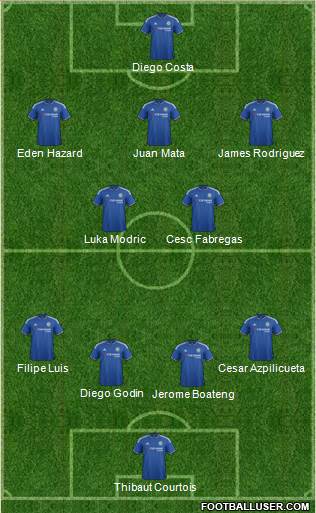 Thibaut Courtois · Jerome Boateng · Diego Godin · Filipe Luis · Cesar Azpilicueta · Luka Modric · Cesc Fabregas · Eden Hazard · Juan Mata · James Rodriguez · Diego Costa