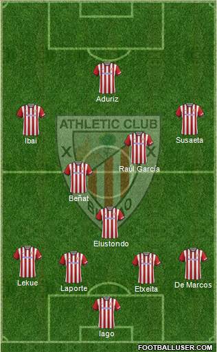 Iago · Etxeita · Laporte · De Marcos · Lekue · Elustondo · Beñat · Raúl García · Ibai · Susaeta · Aduriz