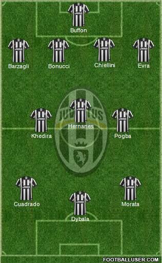 Buffon · Chiellini · Evra · Barzagli · Bonucci · Hernanes · Khedira · Pogba · Cuadrado · Morata · Dybala