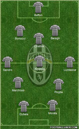 Dybala · Morata · Pogba · Marchisio · Sandro · Lichteiner · Khedira · Chellini · Bonucci · Baragli · Buffon