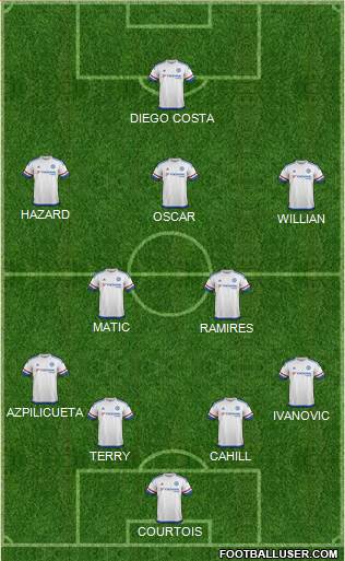 COURTOIS · TERRY · CAHILL · IVANOVIC · AZPILICUETA · RAMIRES · MATIC · WILLIAN · OSCAR · HAZARD · DIEGO COSTA