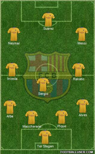 Ter Stegen · Mascherano · Pique · Alba · Alves · Sergio · Rakatic · Iniesta · Neymar · Messi · Suarez