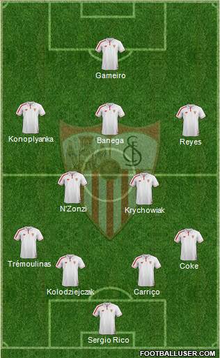 Sergio Rico · Kolodziejczak · Carriço · Coke · Trémoulinas · Krychowiak · N'Zonzi · Reyes · Banega · Konoplyanka · Gameiro