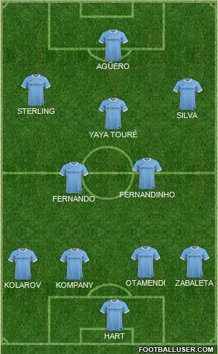 HART · KOLAROV · KOMPANY · OTAMENDI · ZABALETA · FERNANDO · FERNANDINHO · YAYA TOURÉ · SILVA · STERLING · AGÜERO