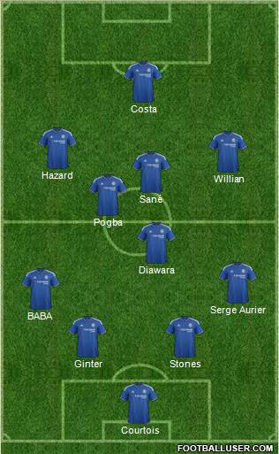 Courtois · Ginter · Stones · BABA · Serge Aurier · Diawara · Pogba · Sané · Willian · Hazard · CostaOUT: Matic, Mikel, Cuadrado, Falcao, Pedro, Oscar, Cahill, Remy, Ivanovic,