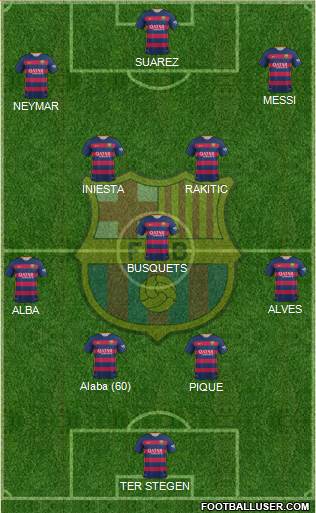 TER STEGEN · PIQUE · Alaba (60) · ALBA · ALVES · BUSQUETS · INIESTA · RAKITIC · NEYMAR · MESSI · SUAREZ