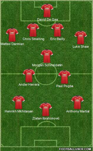 Zlatan Ibrahimović · Henrikh Mkhitaryan · Anthony Martial · Paul Pogba · Ander Herrera · Morgan Schneiderlin · Luke Shaw · Matteo Darmian · Chris Smalling · Eric Bailly · David De Gea