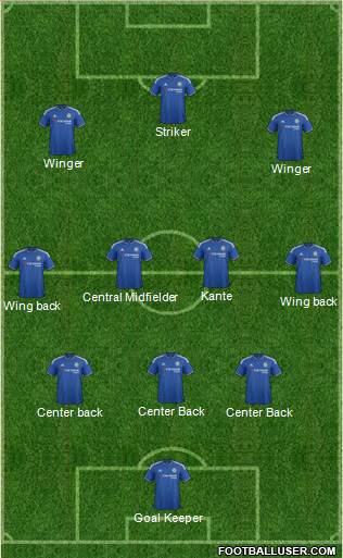 Goal Keeper · Center back · Center Back · Center Back · Wing back · Wing back · Central Midfielder · Kante · Winger · Winger · Striker