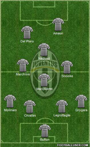 Buffon · Chiellini · Legrottaglie · Molinaro · Grygera · Marchionni · Sissoko · Marchisio · Nedved · Del Piero · Amauri