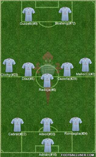 Adrián(#16) · Cabral(#22) · Albiol(#33) · Roncaglia(#24) · Radoja(#6) · Díaz(#5) · Cazorla(#29) · Clichy(#23) · Mallo(C)(#2) · Guidetti(#9) · Boateng(#72)