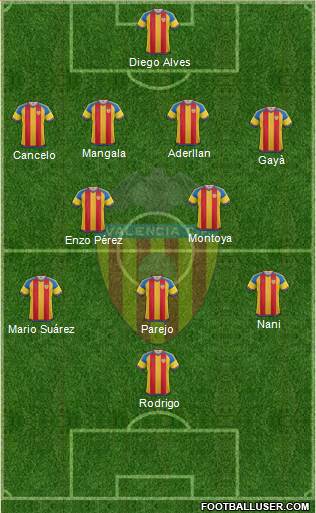 Diego Alves · Mangala · Aderllan · Cancelo · Gayà · Montoya · Enzo Pérez · Nani · Mario Suárez · Parejo · Rodrigo